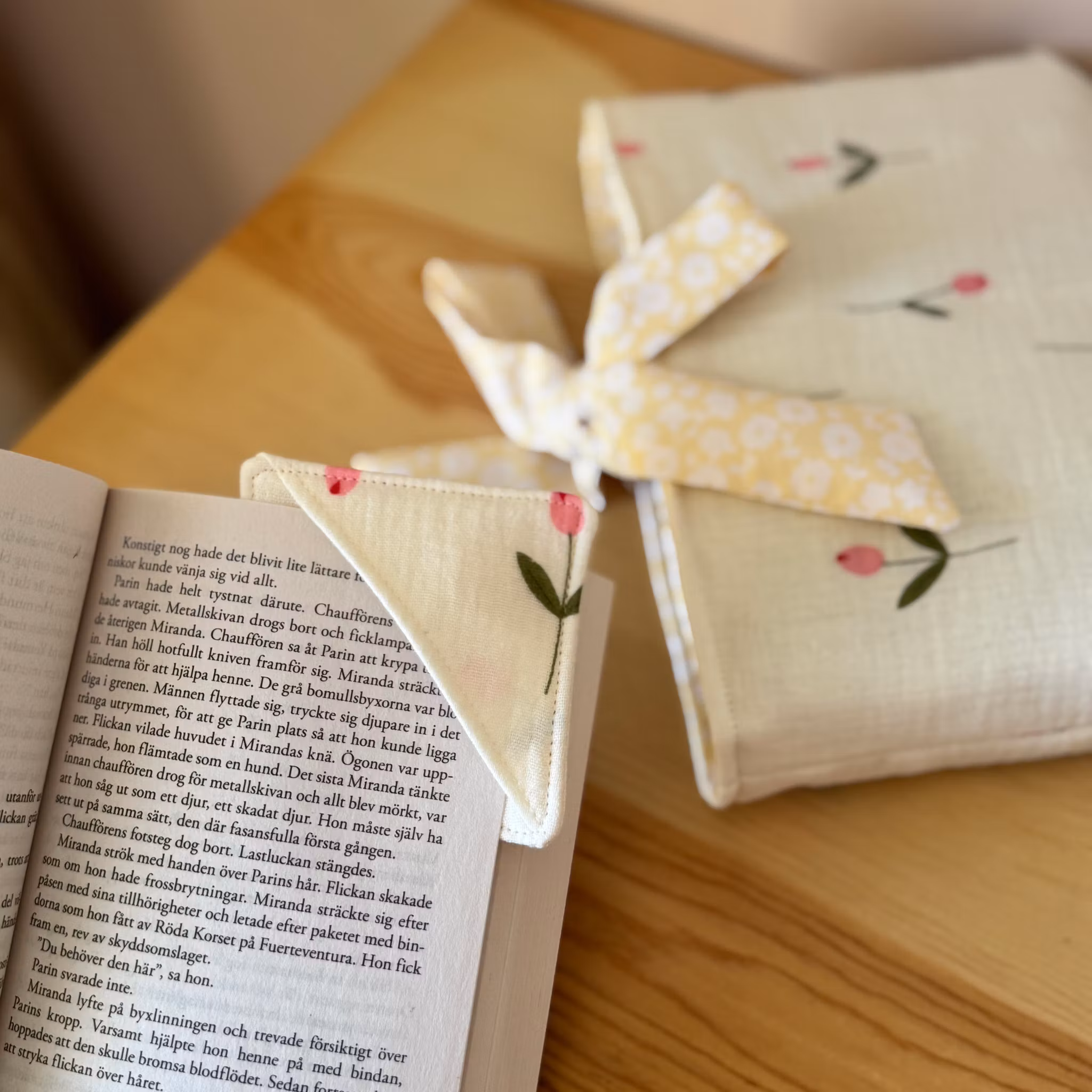 Handsydda bokmärken i tyg – ett charmigt och praktiskt tillbehör för alla bokälskare. De sätts enkelt på bokens hörn och håller din plats utan att skada sidorna.