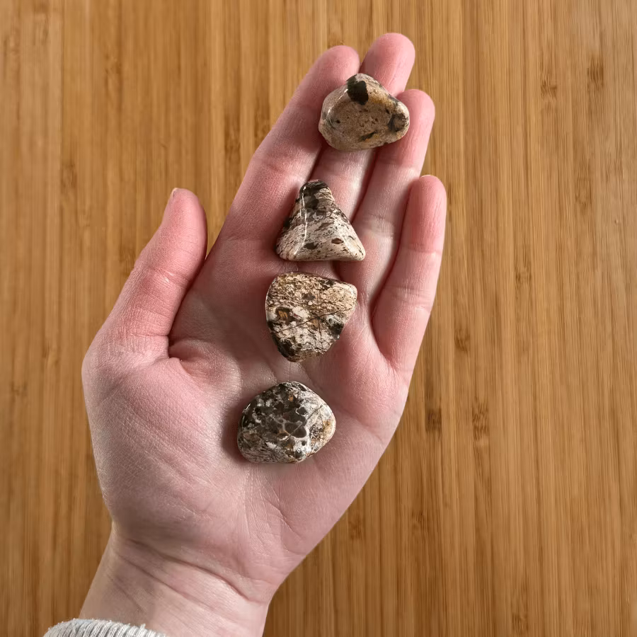 Breccia-jaspis bildas genom att fragment av olika jaspisarter och andra mineraler pressas samman. Vilket resulterar en brokig sten i olika nyanser. Stenen har länge varit en favorit hos mig då den sägs hjälpa mot mag- och tarmbesvär. Jag har under många års tid haft problem med kramper i magen och uppblåsthet, men sen jag skaffade min breccia jaspis har det blivit märkbart bättre. Inte nog med det har breccia-jaspis en lugn och grundande energi, med sin lugnande energi dämpar den stress och oroligheter.