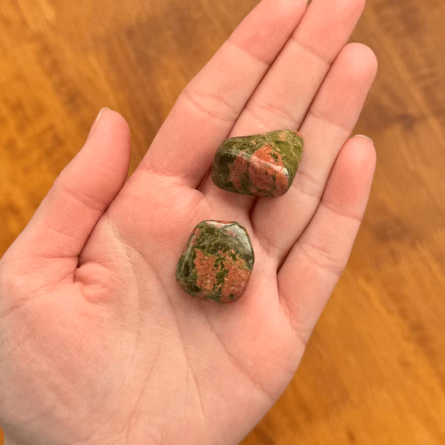 Unakit är en flerfärgad sten som i huvudsak består av mineralerna epidot och fältspat. Den sägs hjälpa släppa ogynnsamma mönster och tankesätt. Den bidrar även till att öppna upp dina vyer, både för vår fysiska värld men också andevärlden. Stenen sägs skapa känslomässig balans. Unakiten jobbar med hjärtchakrat vilket innebär att den främjar kärleksfulla relationer och bidrar till självkärlek.